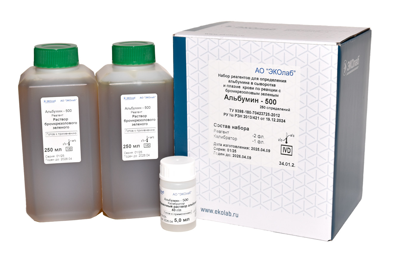Набор реагентов для определения альбумина в сыворотке и плазме крови по реакции с бромкрезоловым зеленым