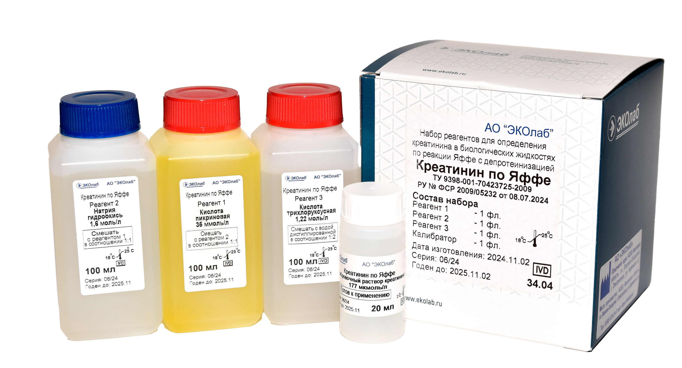 Набор реагентов для определения креатинина в биологических жидкостях по реакции Яффе с депротеинизацией