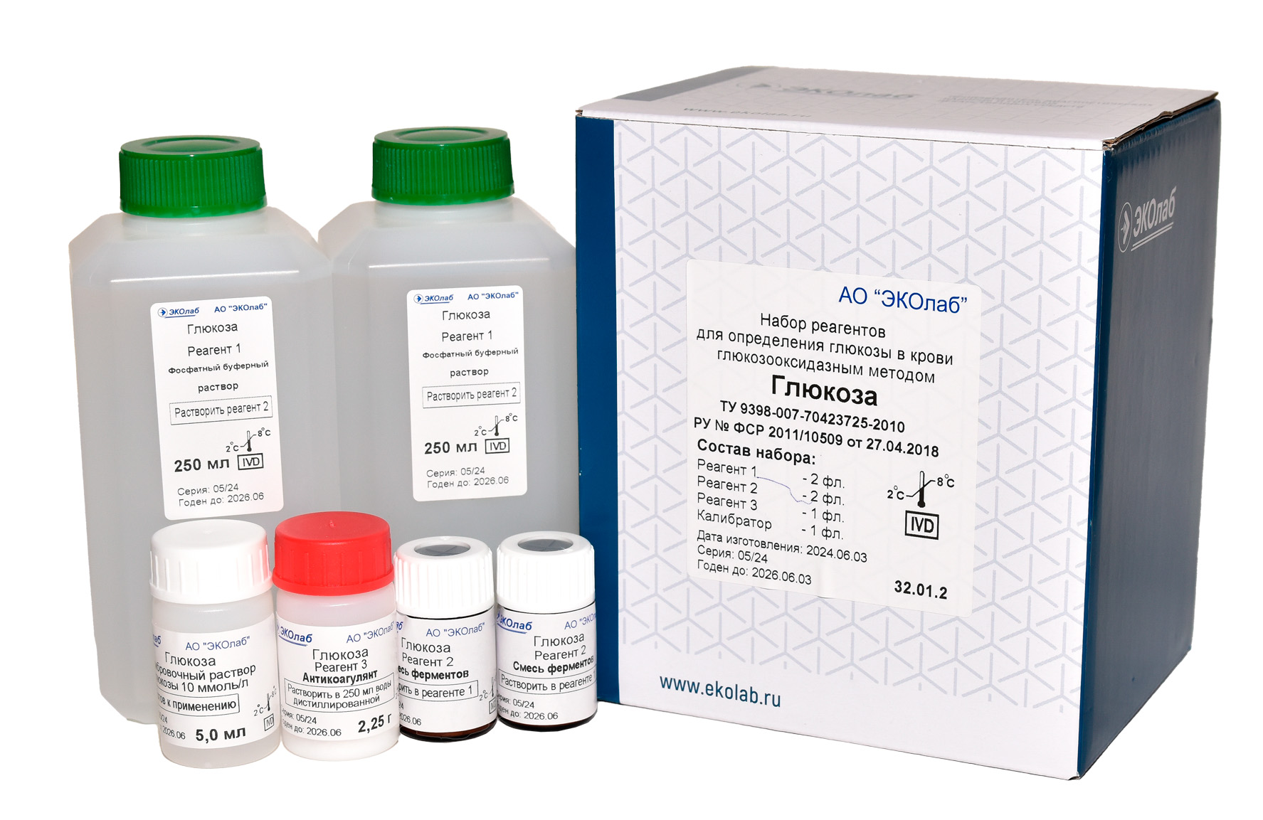 Набор реагентов для определения содержания глюкозы в крови и моче глюкозооксидазным методом