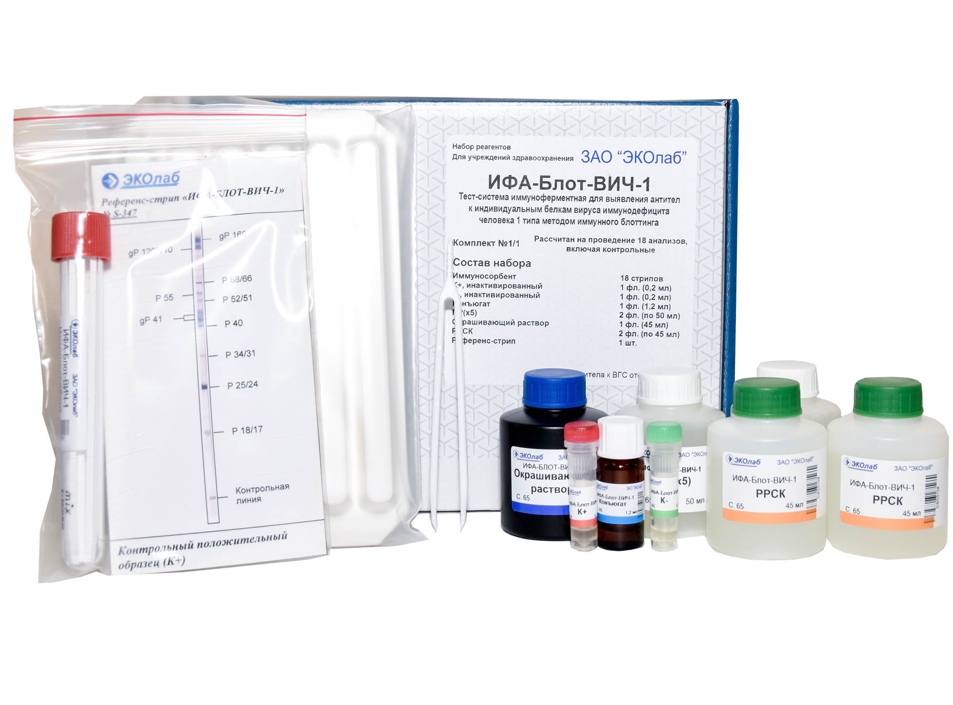 Набор реагентов «Тест-система иммуноферментная для выявления антител к индивидуальным белкам вируса иммунодефицита человека 1 типа методом иммунного блоттинга»