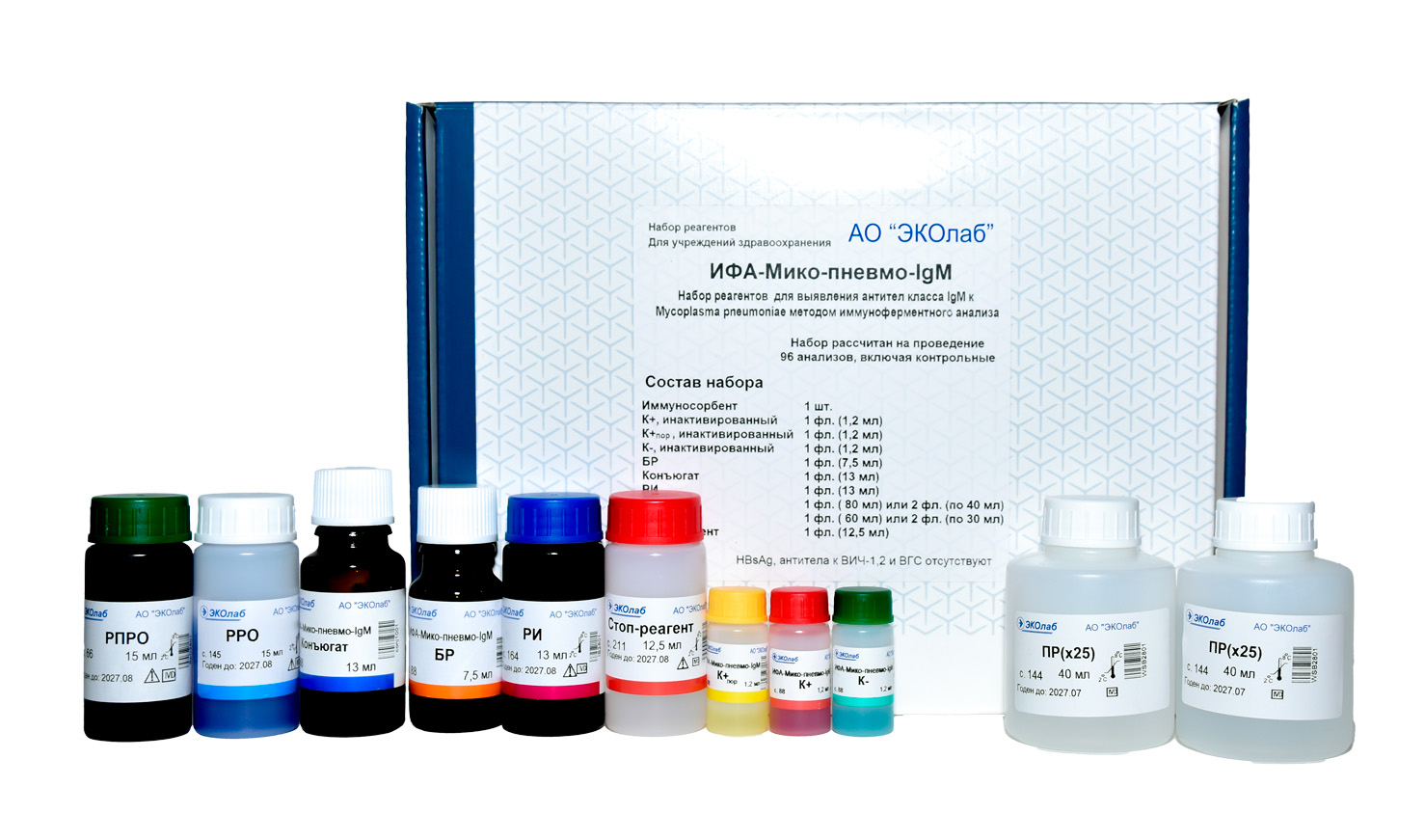 Тесты ЭкоЛаб отличаются высокой точностью и позволяют быстро выявить наличие антител в крови. Реагенты герметично упакованы в коробочки. Большая часть представлена в жидкой или сыпучей формах. Иммунологические исследования проводятся строго в соответствии с техникой безопасности и требуют особой осторожности от лаборанта. В коробке имеется всё необходимое для проведения тестирования.