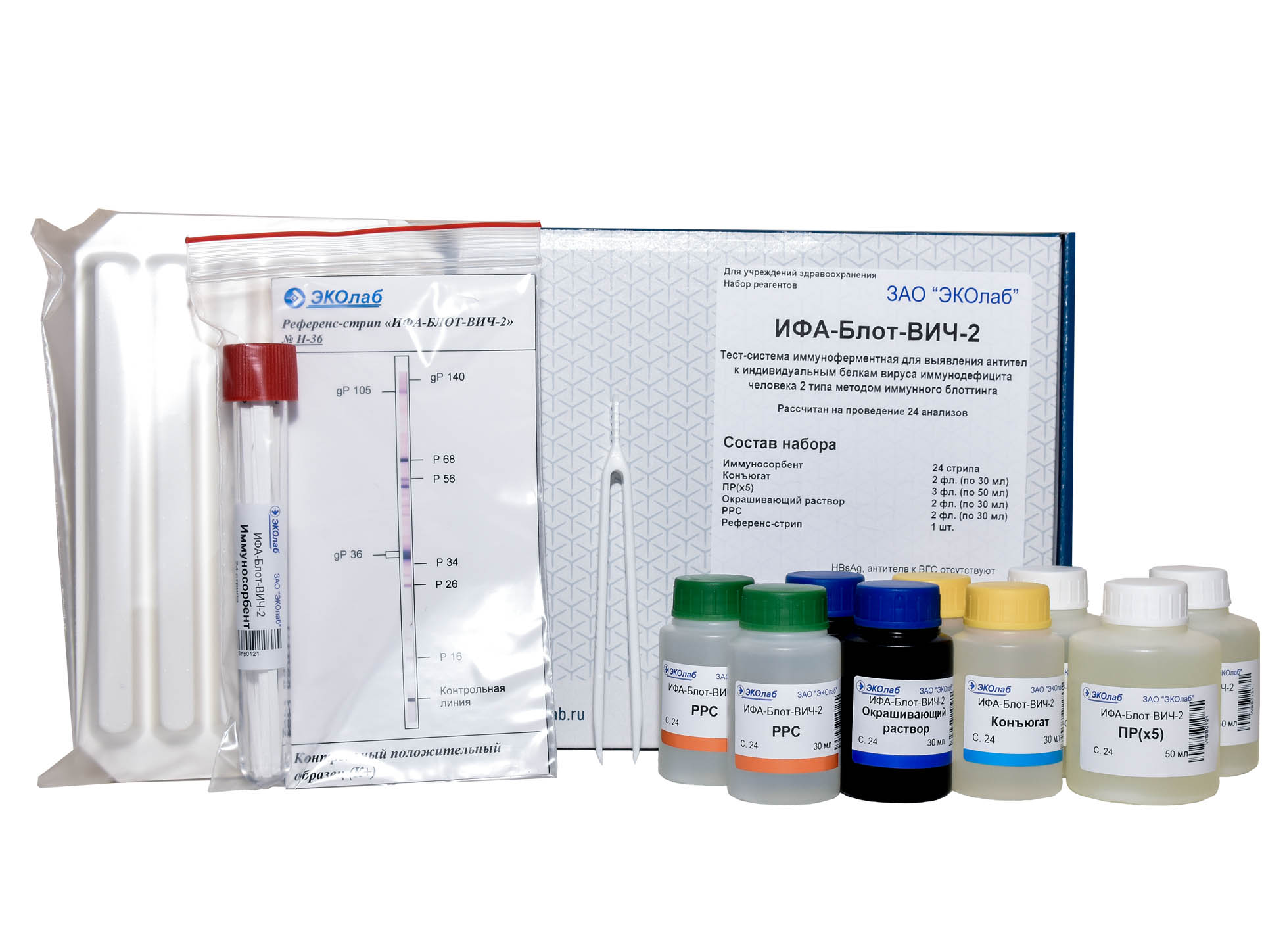 Набор реагентов «Тест-система иммуноферментная для выявления антител к индивидуальным белкам вируса иммунодефицита человека 2 типа методом иммунного блоттинга»