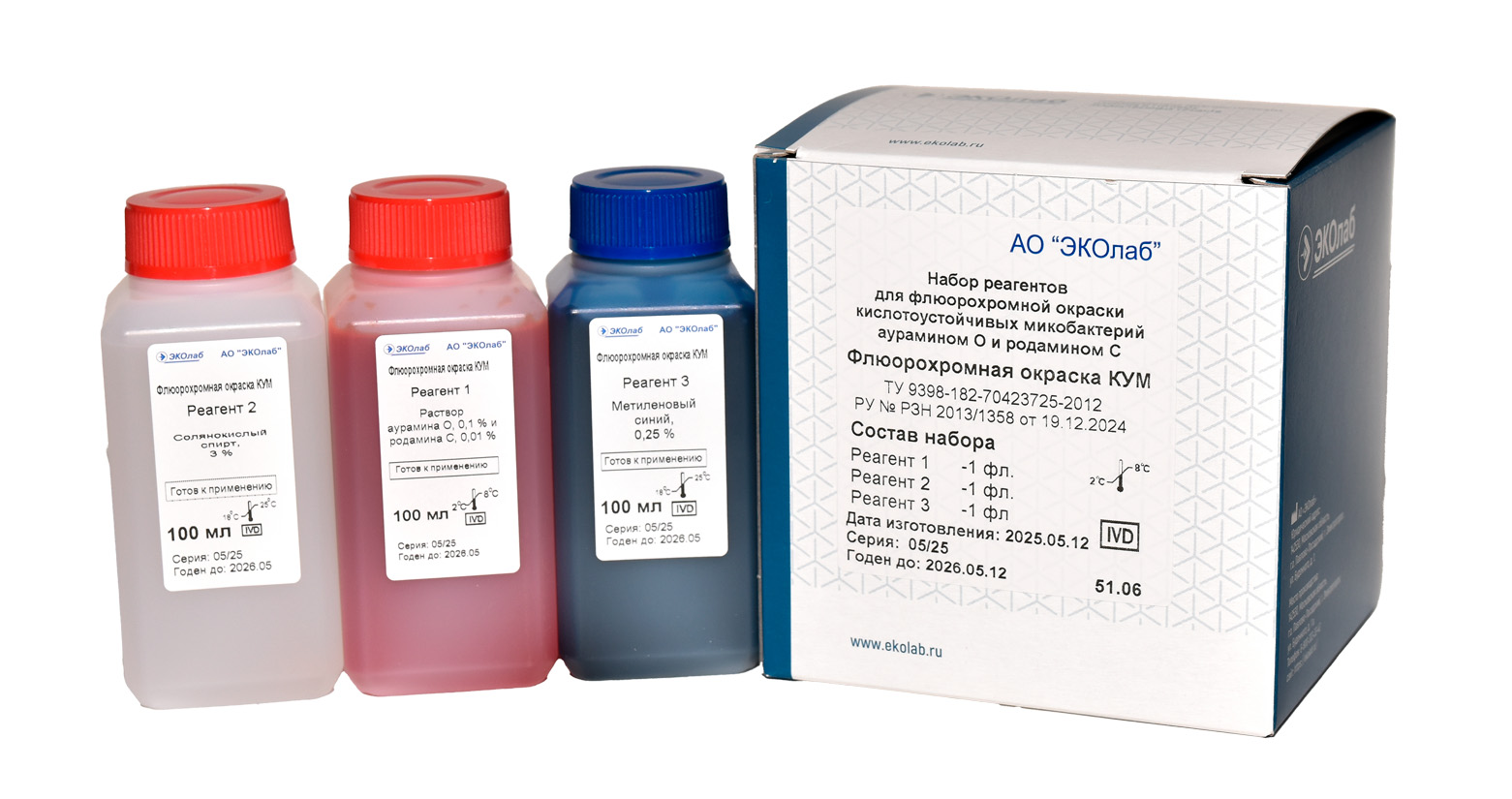 Набор реагентов для флюорохромной окраски кислотоустойчивых микобактерий аурамином О и родамином С