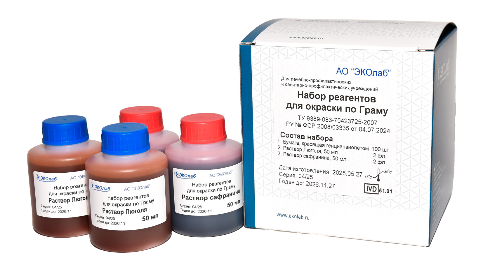 Набор реагентов для окраски по Граму (с сафранином)