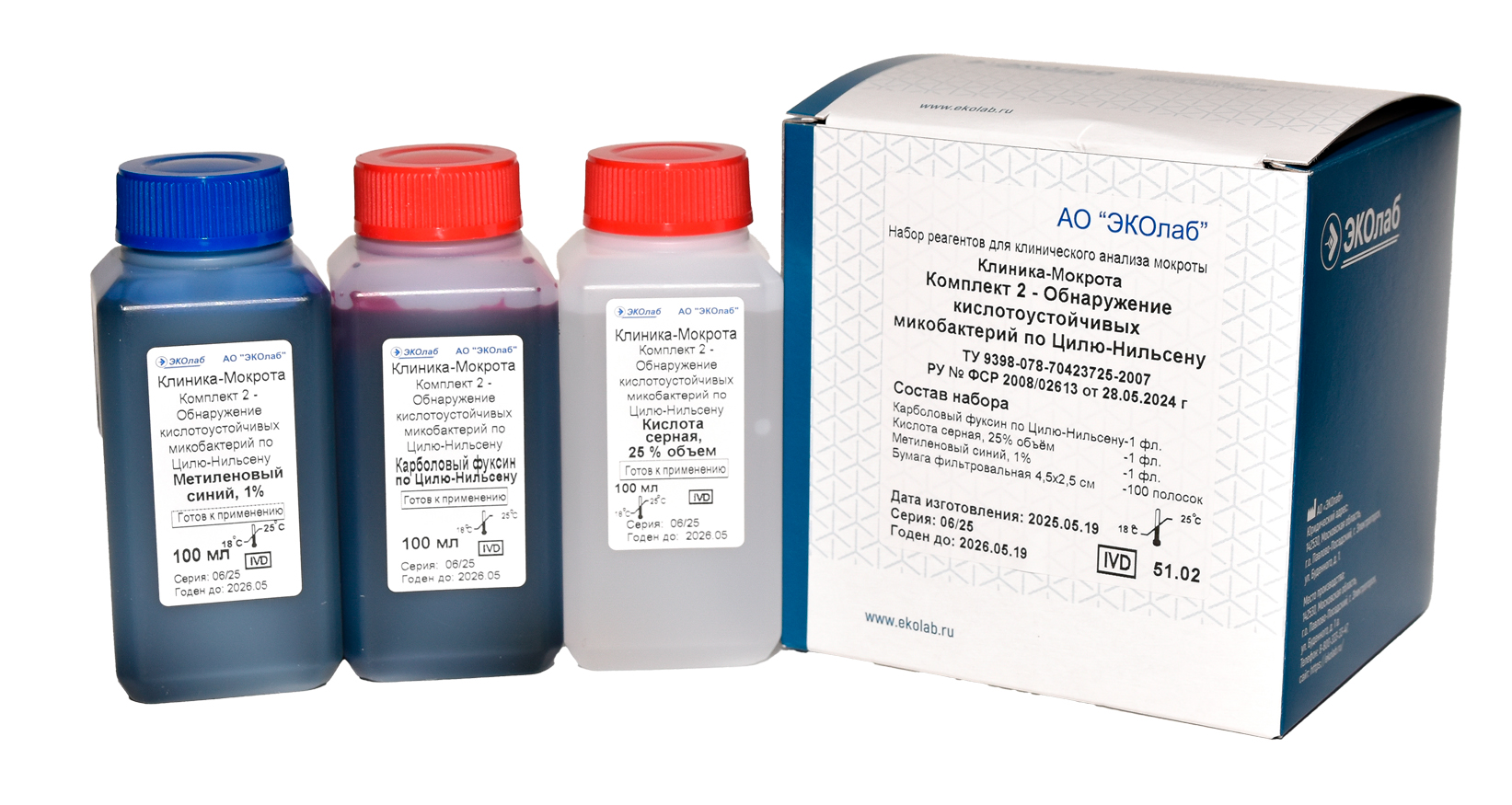 Набор реагентов для клинического анализа мокроты (обнаружение кислотоустойчивых микобактерий по методу Циля-Нильсена) Комплект 1