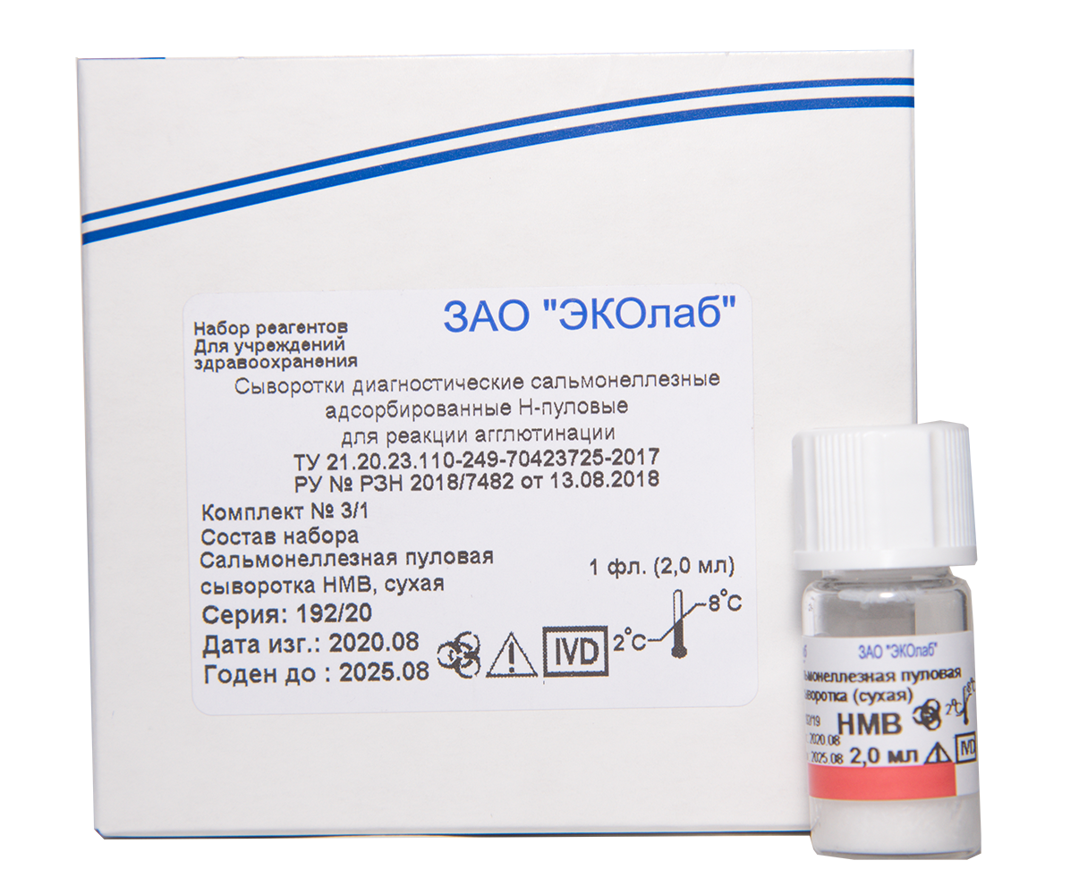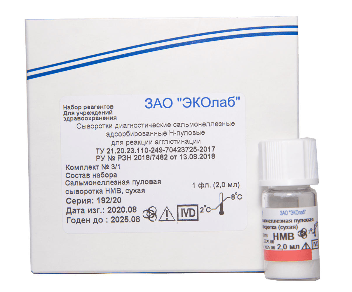 сухая или жидкая иммунная адсорбированная сыворотка крови кролика или барана, содержащая H-агглютинины против антигенов: a; b; c; d; i; z10; z29 бесцветная или розовато-желтого цвета жидкость