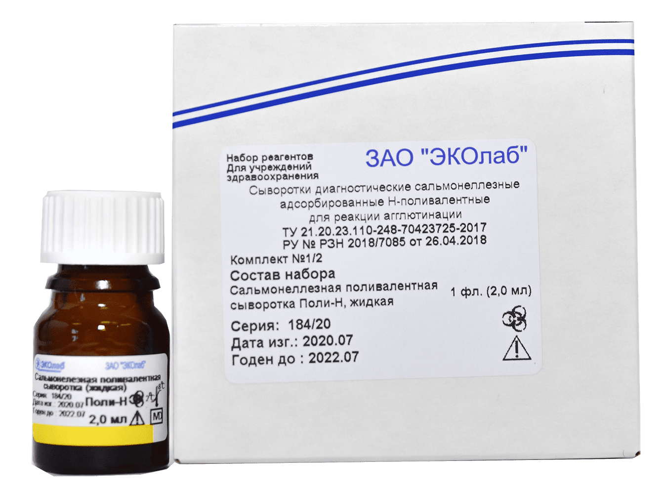 сухая или жидкая иммунная адсорбированная сыворотка крови кролика или барана, содержащая H-агглютинины против антигенов: a; b; c; d; eh; enz15; enx; gm; gq; gp; gpu; fg; gst; gt; mt; gmt; gms; fgs; i; k; lv; lw; lz13; lz28; r; z; y; z4z23; z4z24; z4z32; z10; z6; z29; 1,2; 1,5; 1,6; 1,7
