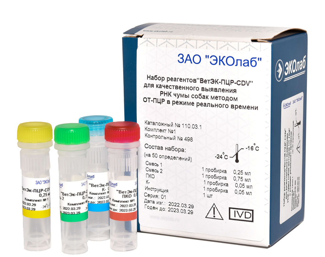 Набор реагентов «ВетЭК-ПЦР-CDV» для качественного выявления РНК чумы собак методом OT-ПЦР в режиме реального времени.