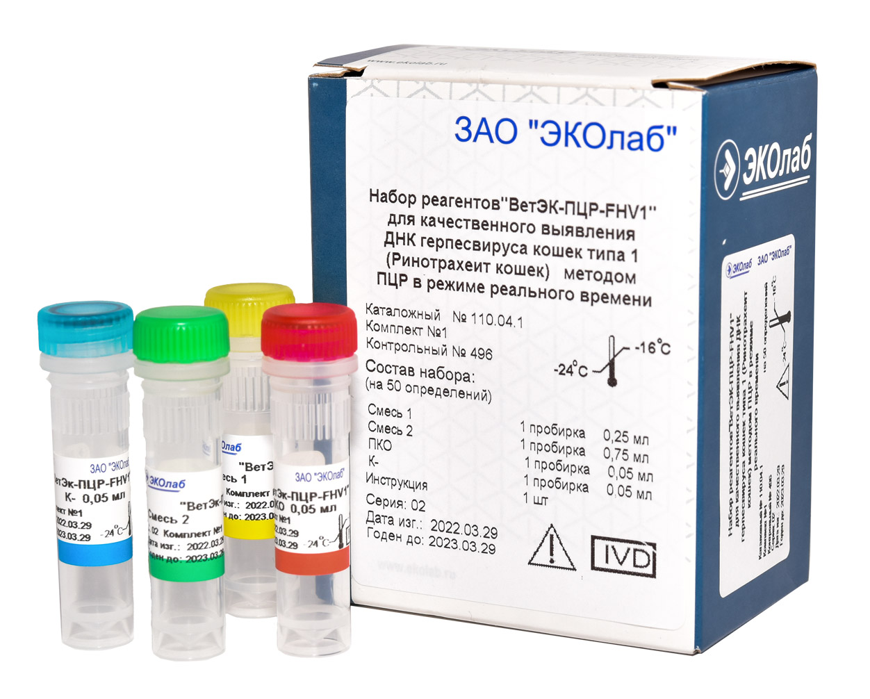 Набор реагентов «ВетЭК-ПЦР-FHV1» для выявления ДНК герпесвируса кошек типа1 (Ринотрахеит кошек) в биологическом материале от животных методом полимеразной цепной реакции (ПЦР) в режиме реального времени.