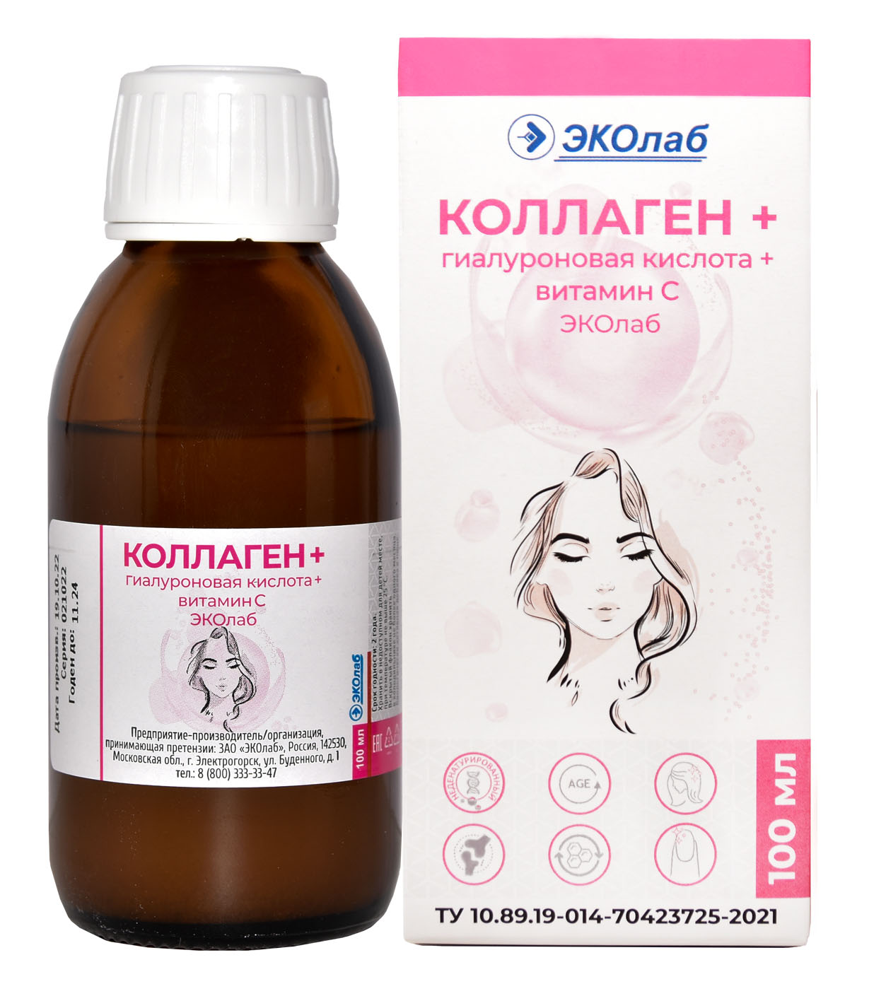 Коллаген + гиалуроновая кислота + витамин С ЭКОлаб