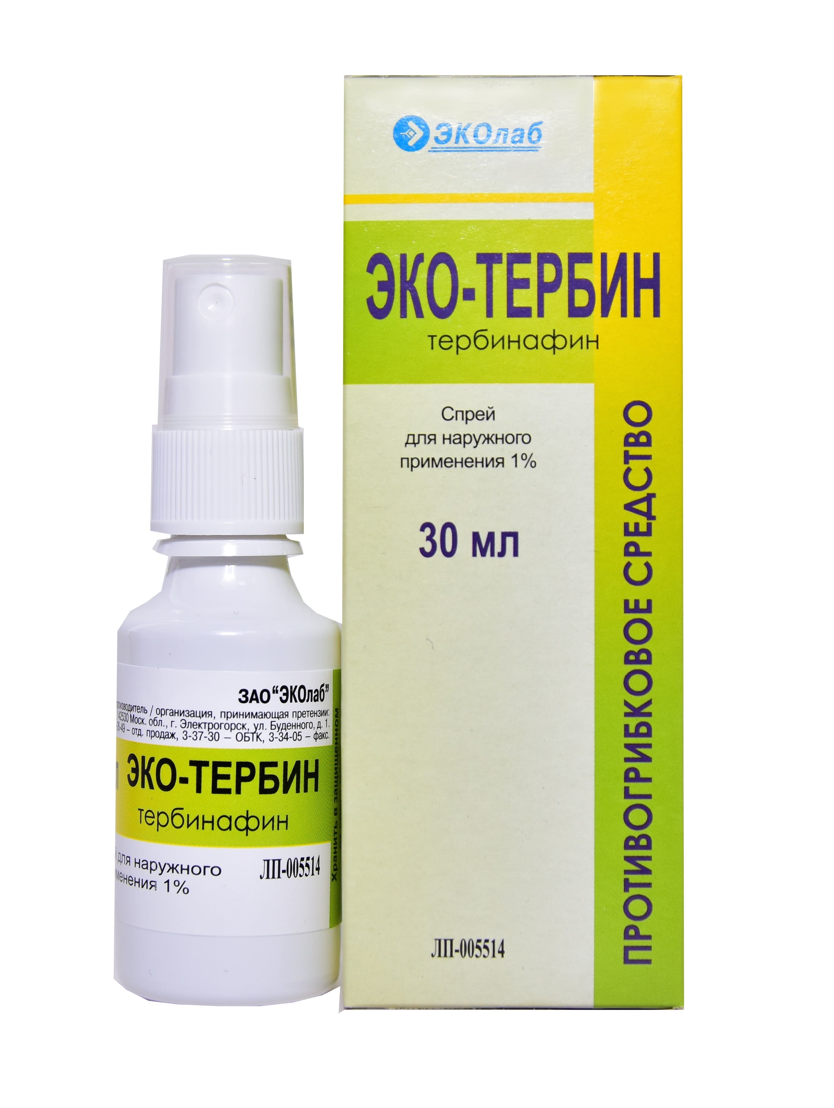 - ЭКО-ТЕРБИН спрей. В его основе натуральные компоненты, без синтетики. Используется для локального лечения грибковых заболеваний. Также помогает избавиться от различных вариаций лишая, нивелирует болезненные симптомы (зуд, покраснение, шелушение). Ещё стимулирует регенерацию эпителия, благодаря чему заживление начинается уже после первого применения спрея.