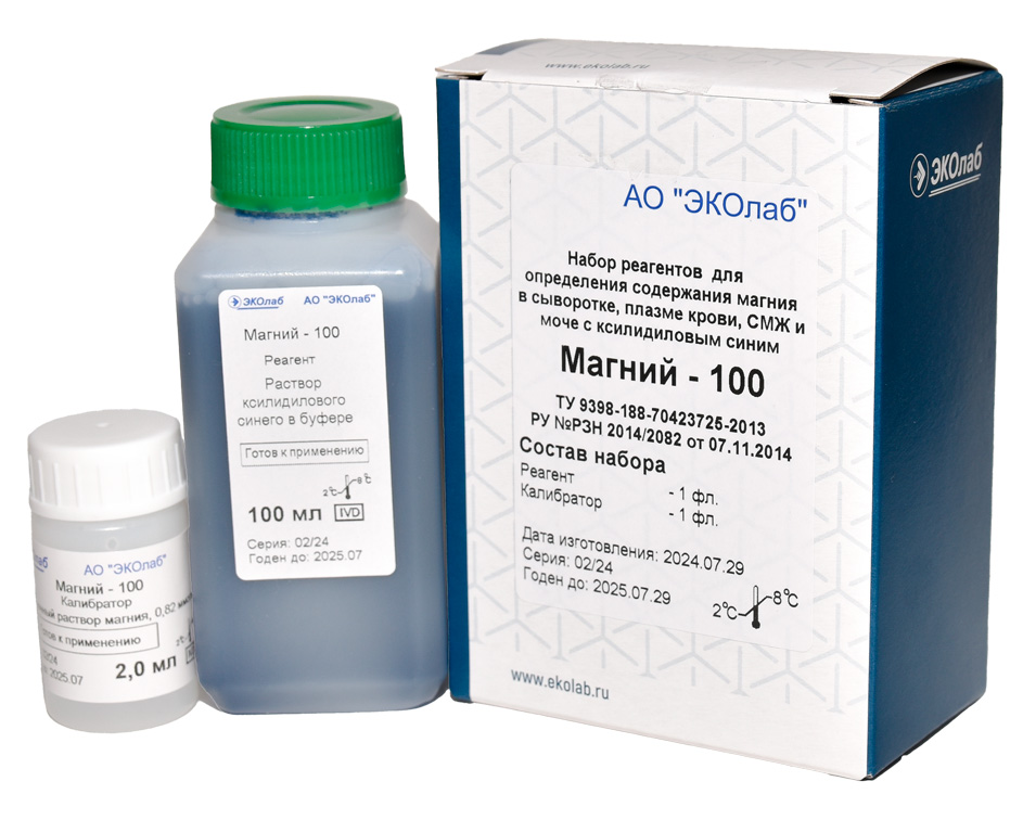 Набор реагентов для определения содержания магния в сыворотке, плазме крови, СМЖ и моче с ксилидиловым синим.