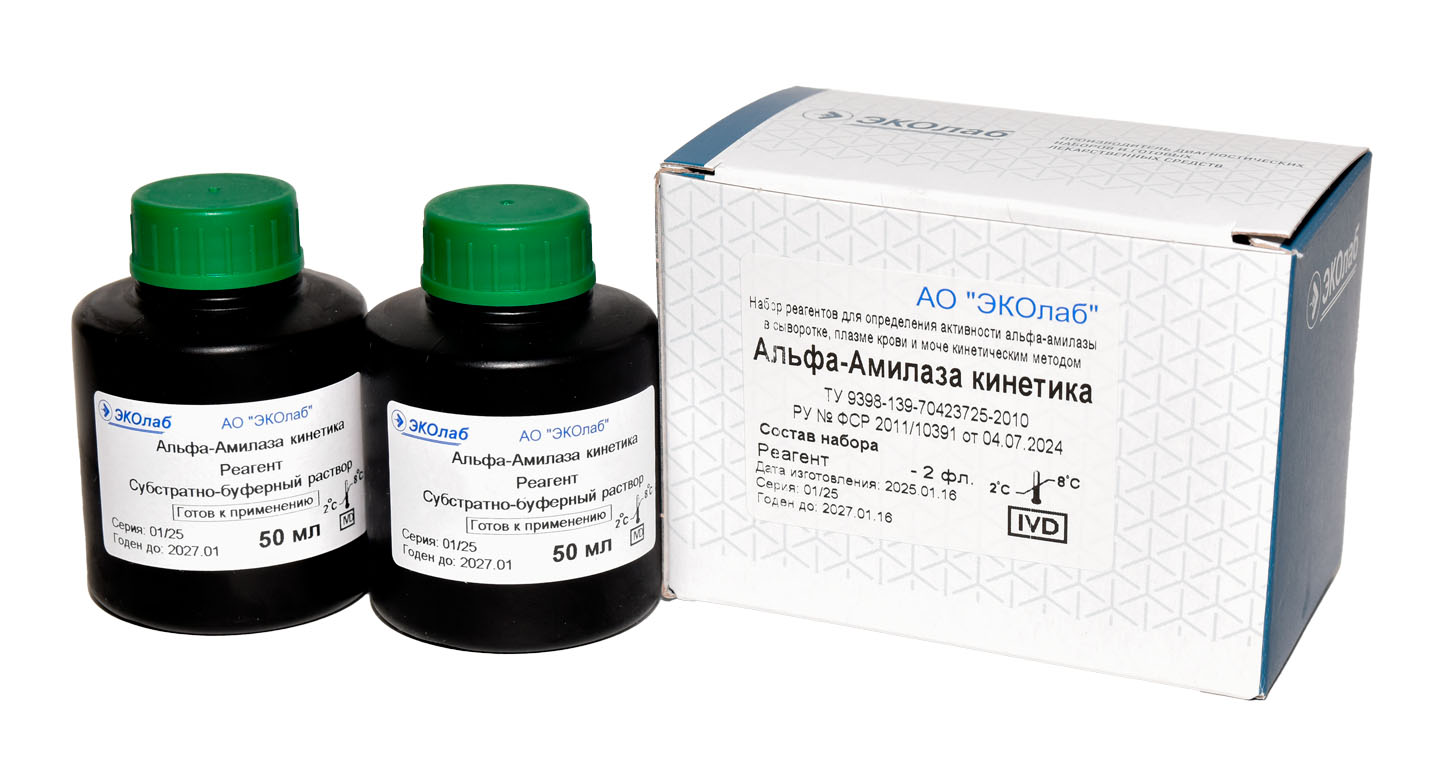Набор реагентов для определения активности альфа-амилазы в сыворотке, плазме крови и моче кинетическим методом
