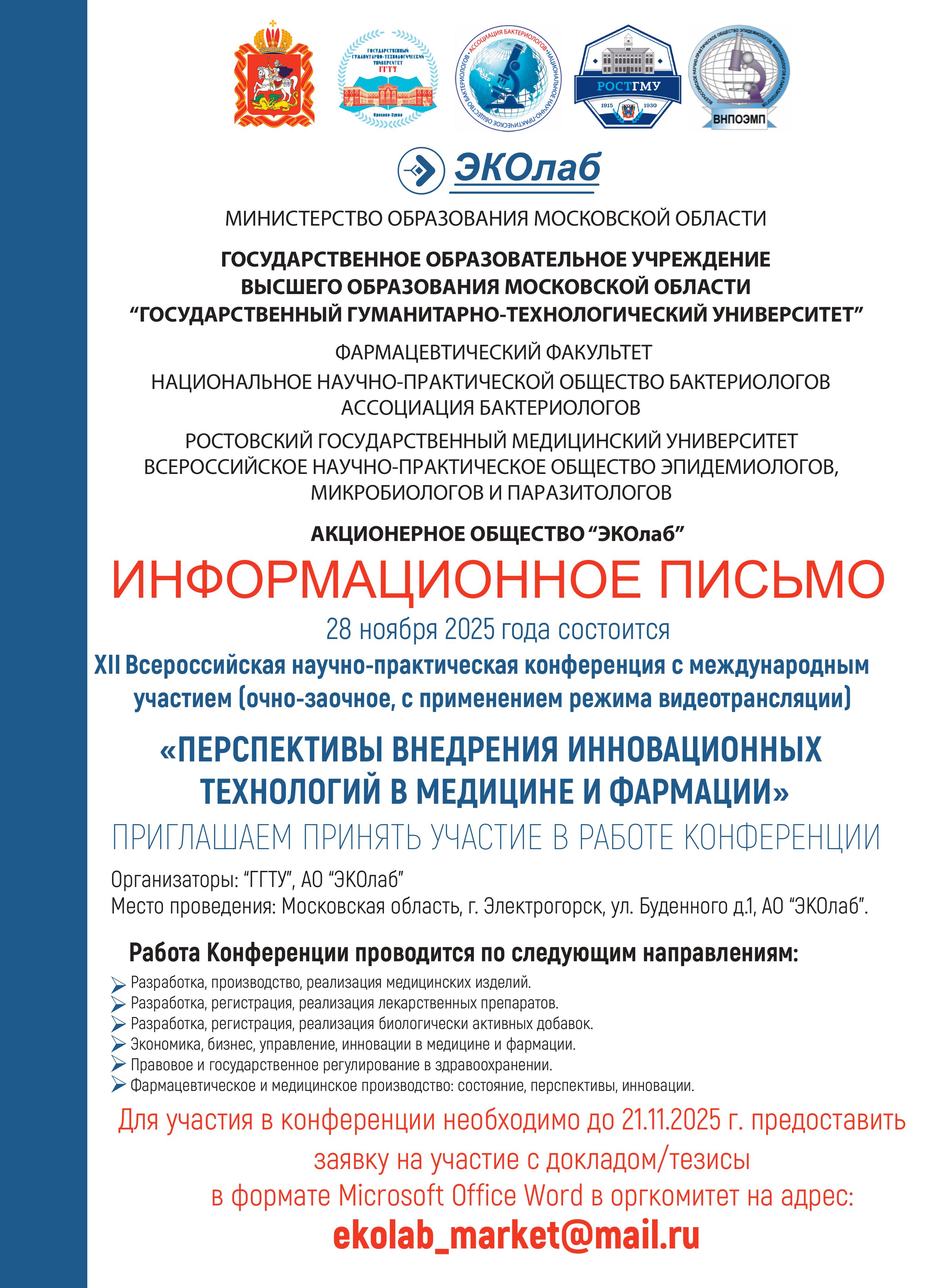28 ноября 2025 года состоится XII Всероссийская научно-практическая конференция с международным участием в очно-заочном формате (с использованием платформы Zoom)